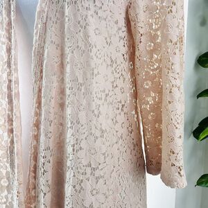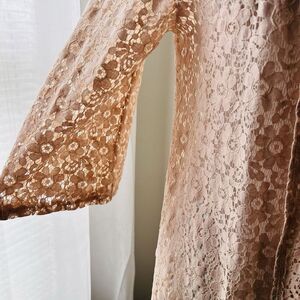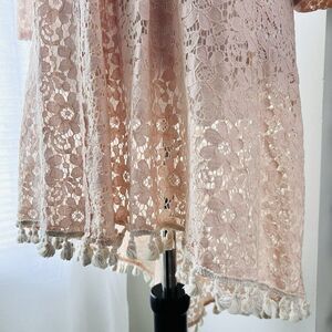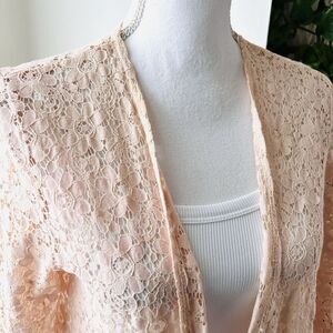 Espresso Blush Pink Lacy Floral Fringed Boho Long Lightweight Cardigan Blouse M