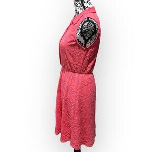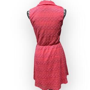 Espresso Button Up Lace Fit and Flare Dress sz M Coral