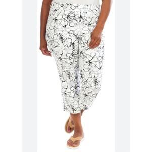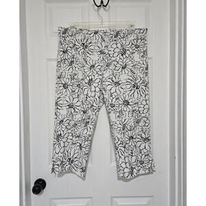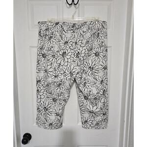 Espresso Capri Pants Slacks Women's Size 2X White Floral Cropped Flexible Waist