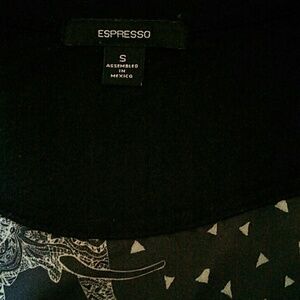 Cute black top with East Indian style elephant print. Sparkle detail is on just one elephant, not all over. Dolman cap sleeves. Curved hem. Chest measures approx 18" from underarm seam to underarm seam. Length is approx 25" from mid shoulder. Good condition, no snags or flaws. Size small.