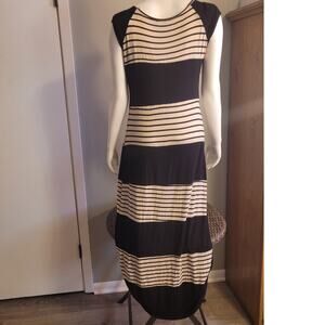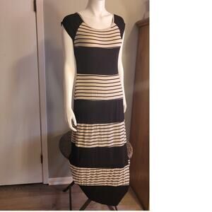 Espresso Striped Maxi Dress - Tan Black - Size XL - Slinky Beachy Lightweight