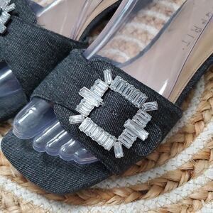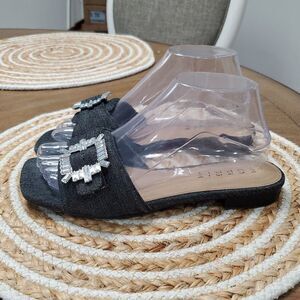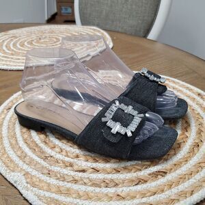 Esprit Averie Women's Dark Demin Embelluahed Buckle Slide Sandals, Size 7, Perfect condition