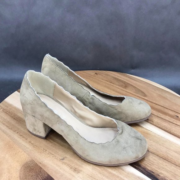 Esprit Beige Faux Suede Block Heel Pumps Womens Size 6