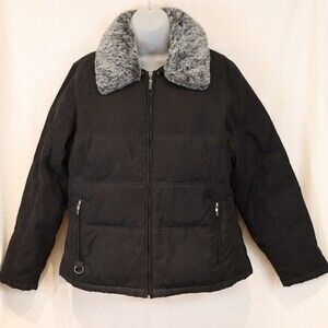 Esprit Black Down Filled Coat Warm Winter Coat Faux Fur Collar Removable Collar