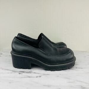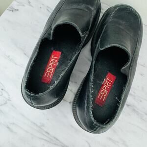 Esprit Black Leather Platform Loafers Women’s Size 6