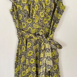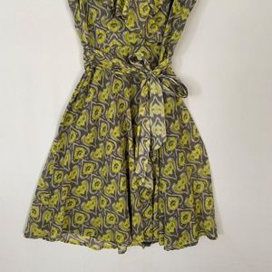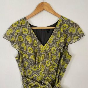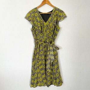 Esprit Collection Fit & Flare Flutter Cap Sleeve Dress Chartreuse & Gray Size 10
