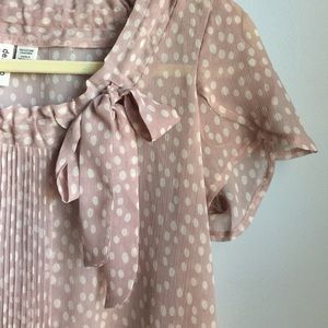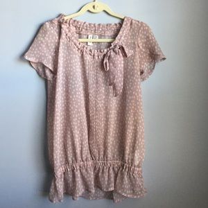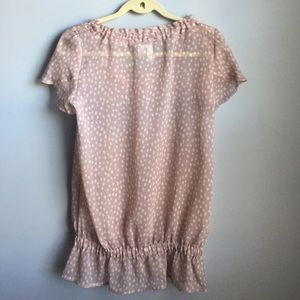 Cute polka dots adorn this Sheer Blouse for an effortless chic look. đź”…petal Sleeve đź”…elastic hem đź”…Excellent condition đź”…Chest 20" across đź”… Length 27"