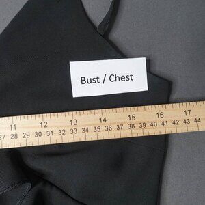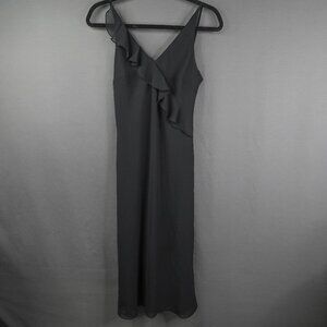 Seller Notes: Solid lining with sheer overlay. Ruffled at the bustline. Zip back. Midi length