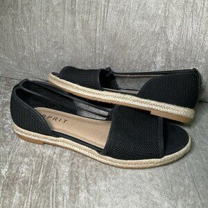 Esprit Flat Espadrille Open toe Black Sandals Size 9.5 EUC casual shoes preppy