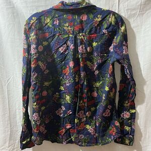 Esprit Floral Print Distressed Long Sleeve Blouse Shirt Womens Size 4