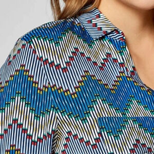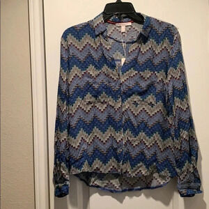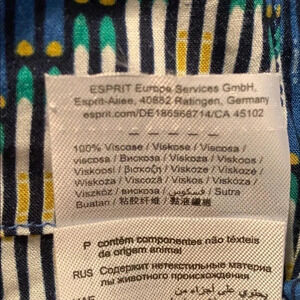 Esprit Multi Color Print Long Sleeve Blouse 100% Viscose Front Chest Pockets Size Women’s 6 New with tags