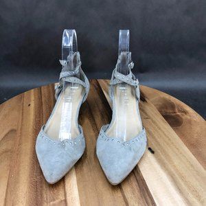 Esprit Gray Studded D'Orsay Ankle Strap Zip Up Adjustable Flats Womens Size 6