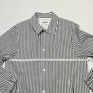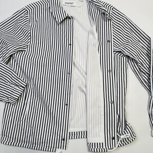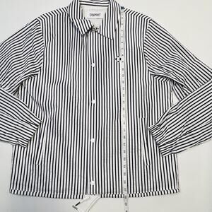 Esprit Jacket Womens Medium Black White Striped Button Up Drawstring Lightweight