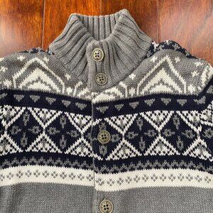 Esprit Mens Nordic Fair Isle Cardigan Aztec Western Gray Size L Vintage