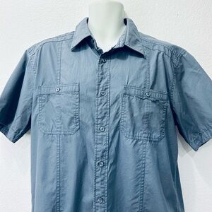 Elevate your outdoor style with this short sleeve button-up shirt. Features dual chest pockets. The linen material provides a comfortable and breathable feel, perfect for any outdoor adventure. The solid blue color and classic design make it a versatile addition to any wardrobe. The button closure and regular fit ensure a perfect fit for any body type. This shirt is ideal for casual occasions and a great choice for any outdoor enthusiast.