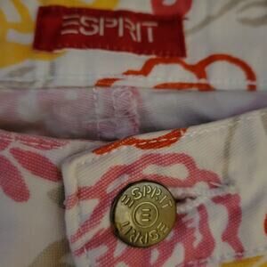 Esprit Red Yellow Pink White Artsy Floral Groovy Stretch Ankle Jeans - 28" = 8