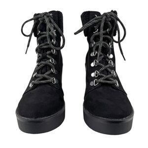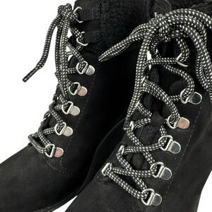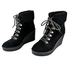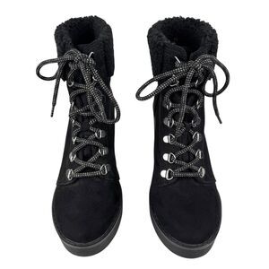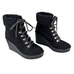 Esprit Roxy Womens Lace Up Cuff Boot 7M Black Suede Sherpa Wedge Heel Bootie