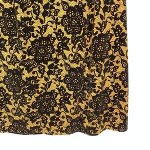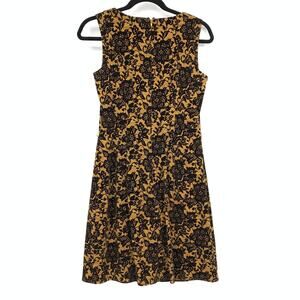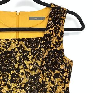 Esprit Sheath Dress Womens Size 6 Flocked Velvet Black Floral Print Yellow Gold