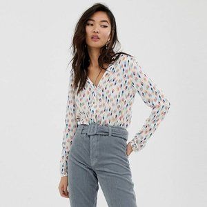 Light shirt. Off-white/ light cream color (almost white), with playful colorful pastel spots from Esprit. Size 4.