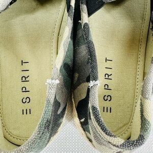 Esprit Size 7.5 Erika Green Camo Camouflage Canvas Espadrilles Slip On Flats in good preowned condition. Light wear to the footbed and soles.