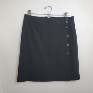 Esprit Skirt L 14 Pencil Navy Blue Button Short A-line Faux Wrap Work Career