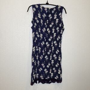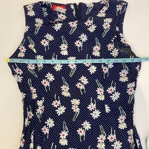 Esprit Sleeveless Mini Slip Dress Floral & Polka Dot Vintage Zipper Sz Sm Navy