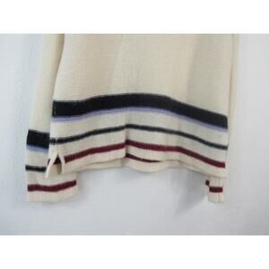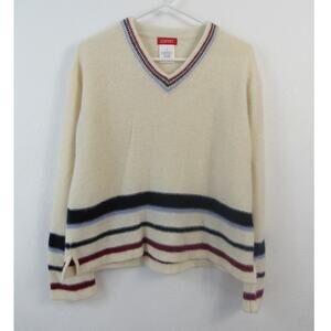Esprit Small Lambswool Rabbit Angora V-Neck Pullover Sweater Cream Striped 90s