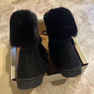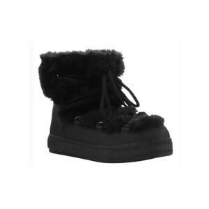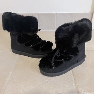 NEW Esprit Winola faux fur lace up side zip black boots size 7.