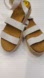 Elegant cream espadrille sandals by Esprit. Features comfortable straps and a stylish design. Size 9. Height about 2 inches. About 11 inches long. Textile upper.