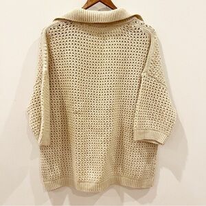 Esprit Womens Crochet Open Knit Wool Alpaca Blend Top M Cream Boho Made In Italy