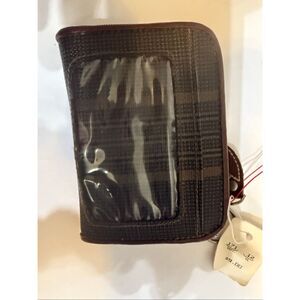 Esprit Women's Stripe Zip Around Compact Coin Wallet Purse Brown NWT