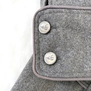 • Features: Double breasted, longline length, logo buttons with “E” & wing detail, cuff + waist tab accents, tailored fit