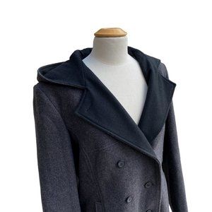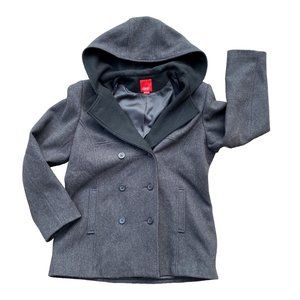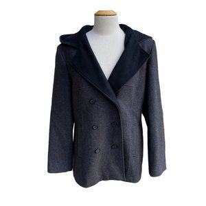 Esprit Wool Hooded Pea Coat Gray Outerwear Nautical Neutral Classic Preppy-L