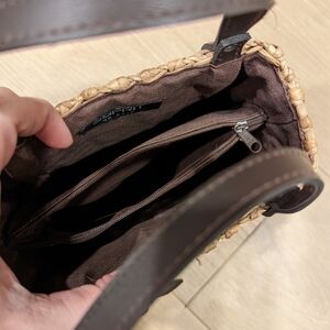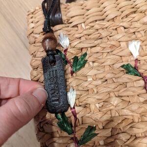 This Esprit woven straw bag features elegant brown handles and charming floral accents. Perfect for adding a touch of nature-inspired style to your outfit.