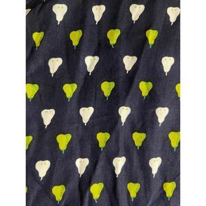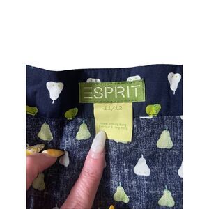Vintage Y2K new with tags Esprit maxi skirt featuring an allover pear print in lime green and white on a navy base. Designed with a flattering high waist and full button-down front for easy wear. Lightweight woven cotton blend with a structured A-line silhouette. Made in Hong Kong.
