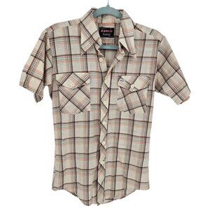 Esprit by campus mens size small vintage plaid button up short sleeve USA Made 80s 90s western Good Preowned Condition faded material care tag May show normal wash wear color may appear differently depending on light