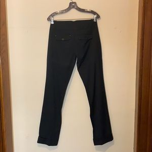 Dark navy (almost black) cuffed dress pants with center crease. Straight leg, wide waistband with notch in back. 32”