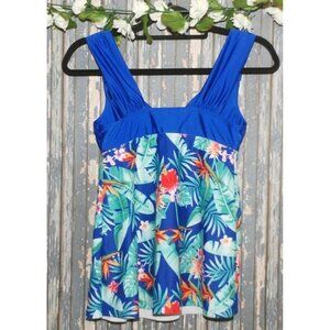 Esprlia Ladies Size S Blue Swimsuit Top Tankini Built In Bra Floral Hawaiian
