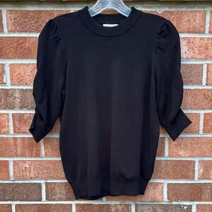 Esqualo Black High Neck Knit Sweater Top, sz XS, Half Length Gathered Sleeves, in great pre-owned condition, measurements are approximate