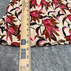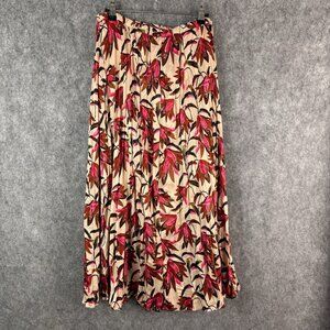Esqualo Pleated Midi Skirt Floral Print Cream Pink Red Size 8 EU 38 Boho Chic