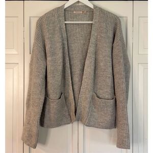 Description: ribbed knit open wool blend cardigan with pockets - acrylic polyester wool blend