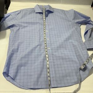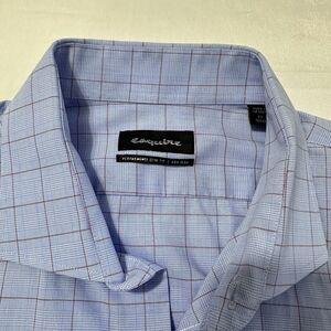 Esquire Shirt Mens 17 Sz Lg Blue Slim Fit Non-Iron Long Sleeve Plaid Dress Shirt