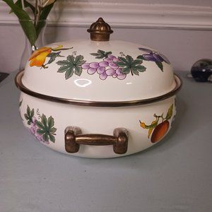 This vintage Dutch oven is made of a high-quality carbon steel for fast and even heat distribution. Some patina on the handles as shown due to age. Excellent Condition.
