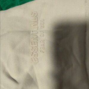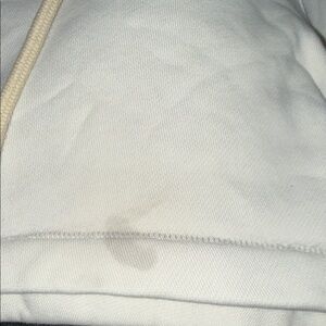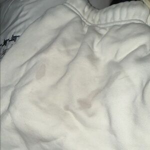 Soft cream shorts with elastic waistband. Minimalist design with subtle branding. Stained.