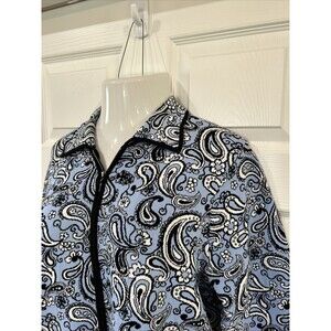 * Essential G Santana Fine Knit Zip Front Paisley Print Blue Plus Size Sweater 2X