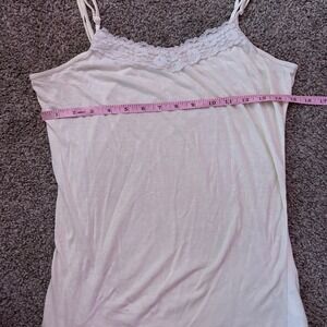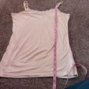 Keywords: cami, tank top, lace trim, cream, essentials, small, sleeveless, adjustable straps, cotton blend, casual, summer, womens top, innerwear, layering piece