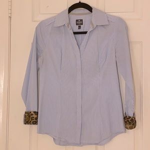Long sleeves with button cuffs and Super Chic leopard print. Roll up the sleeves for a more casual modern look!