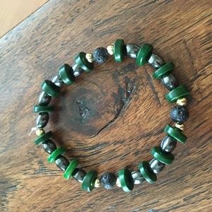 Essential Oil Bracelet Lava Beads Green, gold and hematite Handmade