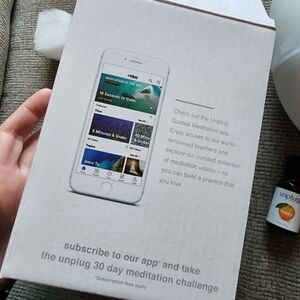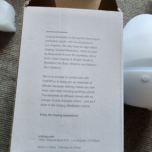 Brand new in box. Get your ZEN on with the Unplug Meditation Diffuser with LED changing lights. Includes one bottle of Happy essential oil. Unplug meditation diffuser with essential oil. Includes power cord and instructions. Perfect for relaxation.