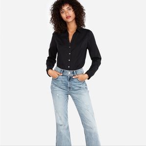 NWT in bag. Black. Small. Tailored. V neck. Button down. Fitted style with princess seams. Double button at arm. Black buttons. This is the original fit style. Can be ironed. 60% cotton 35 polyester 5 spandex